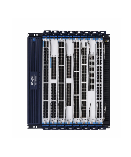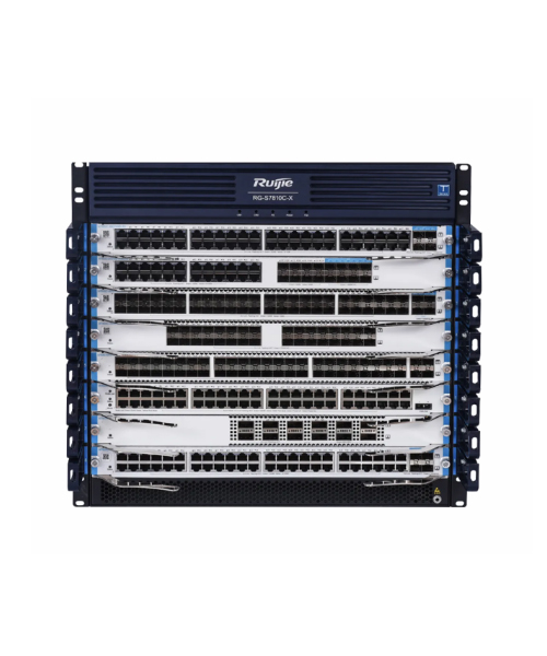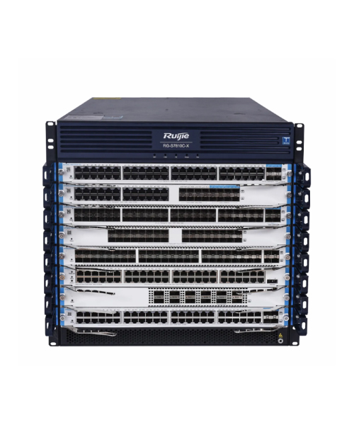 多业务高性能核心交换机,10个模块插槽,另外支持4个独立交换网板,主控引擎1+1冗余,电源模块N+M冗余,支持热插拔,RG-S7810C-X