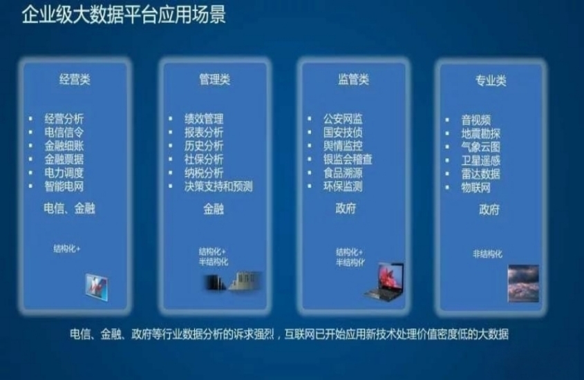 大数据按照数据流程可划分为几个相关系统:数据收集、数据接入、数据处理、数据分析、数据可视化等。