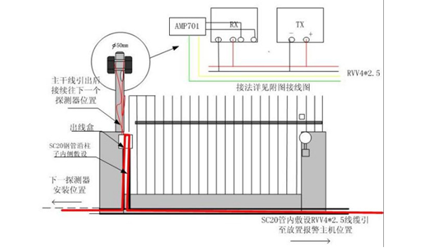 1.线路绝对不能明敷,必须穿管暗设,这是红外对射工作安全性的最起码的要求。