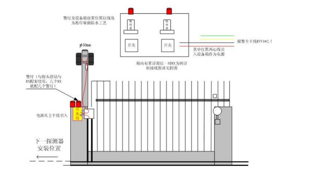 设置在围墙上的探测器,其主要功能是防备人为的恶意翻越,顶上安装和侧面安装两种均可。